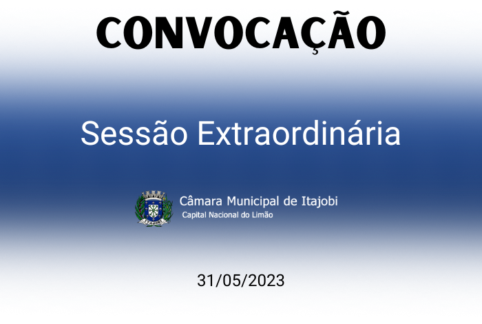O PRESIDENTE DA CÂMARA MUNICIPAL DE ITAJOBI, no uso de suas atribuições legais, escudada nos termos do art. 15, incisos I da L.O.M, resolve tornar público e CONVOCAR toda a Edilidade deste Poder Legislativo, para a Sessão Extraordinária que realizar-se à no dia 31/05/2023, ás 17:00 horas para deliberar o seguinte: